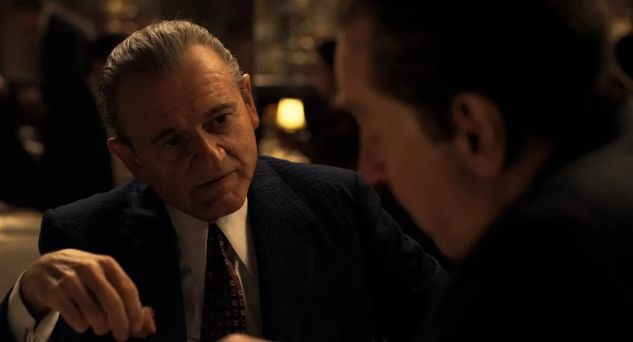 Cast: Robert De Niro as Frank Sheeran, Al Pacino as Jimmy Hoffa, Joe Pesci as Russell Bufalino, Stephen Graham as Anthony 'Tony Pro' Provenzano, Ray Romano as Bill Bufalino, Harvey Keitel as Angelo Bruno, Bobby Cannavale as 'Skinny Razor', Anna Paquin as Older Peggy Sheeran, Stephanie Kurtzuba as Irene Sheeran, Kathrine Narducci as Carrie Bufalino, Welker White as Josephine 'Jo' Hoffa, Jesse Plemons as Chuckie O'Brien, Jack Huston as Robert Kennedy - RFK, Domenick Lombardozzi as 'Fat Tony' Salerno, Paul Herman as 'Whispers' DiTullio, Louis Cancelmi as 'Sally Bugs', Gary Basaraba as Frank 'Fitz' Fitzsimmons, Marin Ireland as Older Dolores Sheeran, Sebastian Maniscalco as 'Crazy Joe' Gallo, Steven Van Zandt as Jerry Vale, Lucy Gallina as Young Peggy Sheeran, Jonathan Morris as Assisted Living Priest, Dascha Polanco as Nurse, Bo Dietl as Joe Glimco, Aleksa Palladino as Mary Sheeran, Daniel H. Jenkins as E. Howard 'Big Ears' Hunt, Jim Norton as Don Rickles, Billy Smith as FBI Agent #1, Kevin O'Rourke as John McCullough, Action Bronson as Casket Salesman, Glenn Cunningham as Investigator, Paul Ben-Victor as Jake Gottlieb, Patrick Gallo as Anthony 'Tony Jack' Giacalone, James Martin as Mother of Sorrows Priest, Jake Hoffman as Allen Dorfman, Barry Primus as Ewing King, Danny A. Abeckaser as 'Deadbeat', Anthony J. Gallo as Food Fair Manager, J. C. MacKenzie as Prosecutor Jim Neal, Joseph Bono as Frank Sindone, Jamil Antonio Stefan as Phil Testa, Louis Vanaria as Dave Ferrie, Craig Vincent as Ed Partin, John Polce as Joe Colombo, Joseph Riccobene as Jimmy 'The Weasel' Fratianno, Vinny Vella as Meat Company Yard Manager, Thomas E. Sullivan as Warren Swanson, John Cenatiempo as Anthony 'Tony 3 Fingers' Castellito, Robert Mladinich as Anastasia's Bodyguard, Rich Reilly as Phil the Bartender, Robert Funaro as Johnny - Friendly Lounge, Tess Price as Young Maryanne Sheeran, Jennifer Mudge as Older Maryanne Sheeran, India Ennenga as Young Dolores, Jordyn DiNatale as Young Connie Sheeran, Kate Arrington as Older Connie Sheeran, Bernie Martin as Teamster, Philip Suriano as Silver Shop Owner, Tony Suriano as Silver Shop Owner's Son, Jason A. Iannacone as German Prisoner #1, Michael C. Brennan as German Prisoner #2, James P. Harkins as John the Redhead, Al Linea as Sam 'Momo' Giancana, Garry Pastore as Albert Anastasia, Frank Pietrangolare as Bartender - Friendly Lounge, Frank Aquilino as Friendly Lounge Guy 'Butchie', Johnny T. Sollitto as Friendly Lounge Patron, Patrick Murney as Peggy's Godfather, Samantha Soule as Peggy's Godmother, Richard V. Licata as Judge - Frank's First Trial, Vito Picone as Villa Roma Manager, Larry Mazza as Anastasia's Hitman #1, Craig DiFrancia as Anastasia's Hitman #2, Ira Drukier as Motel Manager, Jon Bruno as Russell's Bodyguard, Paul Borghese as Mobster #1 - Curtain Shop, Steven Maglio as Mobster #2 - Curtain Shop / Copa Guest #1, James Licata as Mobster #3 - Curtain Shop, Veronica Alicino as Curtain Shop Staff #1, Mike Massimino as Curtain Shop Staff #2, James Ciccone as Anastasia's Mobster in Car #1, Ron Castellano as Anastasia's Mobster in Car #2, Marco Greco as Grocer, Meghan Rafferty as Bill Bufalino's Wife, Aldo Sergi as Aldo, James Lorinz as Hoffa's Rally Teamster #1, Jeffrey Paul as Hoffa's Rally Teamster #2, Robert C. Kirk as Hoffa's Rally Teamster #3, Vince Maritato as Bathhouse Teamster, Lawrence Smith as Louis, Rebecca Faulkenberry as Barbara Hoffa, Ken Wulf Clark as James P. Hoffa, John Rue as Senator McClellan, Steve Routman as Hoffa's Attorney - George Fitzgerald, Fernando Vera as Castellito's Driver, Peter Claymore as Tough Teamster - Hoffa's Office, Charles DelGatto as Phil - Milestone Hauling, Michael Gongora as Cuban Worker, Eugene Bunge as Joseph Kennedy, Matthew F. O'Connor as Pro Rally Teamster #1, Cliff Moylan as Pro Rally Teamster #2, Vincenzo DelRiccio as Pro Rally Teamster #3, Steve Beauchamp as Pro Rally Teamster #4, Alfred Sauchelli Jr. as Trucking Company Owner, Joe Giorgio as Local 326 Truck Driver, Diana Agostini as Ice Cream Shop Patron #1, Lauren Aparicio as Ice Cream Shop Patron #2, Kelley Rae O'Donnell as Ice Cream Shop Staff #1, John Garrett Greer as Ice Cream Shop Staff #2, Jack Caruso as Swanson's Booking Detective, John Scurti as Bertram B. Beveridge, Thomas J. Jenkins as Nashville Court Clerk, Steve Witting as Judge William Miller, Luke Smith as Reporter, Brent Langdon as Judge Frank Wilson, James D. Forsha as Tony Pro's FBI Agent #1, Giacomino J. Matra as Tony Pro's Guy #1, Paul Pearlman as Tony Pro's Guy #2, Frank L. Messina as Tony Pro's Guy #3, Cilda Shaur as Colombo's Wife, Dominick LaRuffa Jr. as Colombo's Son #1, Erick Zamora as Colombo's Son #2, Joe Caniano as Copa Guest #2, Lou Martini Jr. as Copa Guest #3, Michael Bottari as Copa Guest #4, John Bianco as Copa Guest #5, Margaret Anne Florence as Gallo's Wife - Sina, Siena Marino as Gallo's Daughter - Lisa, Lori Arkin as Gallo's Sister - Carmella Fiorello, Nicholas Chrysan as Pete the Greek, Samantha Coppola as Pete the Greek's Girlfriend, Logan Crawford as Reporter at Prison, Jeff DeHart as President Nixon, Mark Fairchild as Attorney General Mitchell, Blaise Corrigan as Dave Johnson, Jill Brown as Dave Johnson's Wife, Tim Neff as Little Fitz, Matt Walton as TV Host - Moderator, Peter Jay Fernandez as NAACP President Cecil Moore, Stephen Mailer as District Attorney Emmett Fitzpatrick, Gino Cafarelli as Mayor Frank Rizzo, Robin Kerbis as Angelo Bruno's Wife, Lucia Giannetta as Tony Pro's Wife, Michael Romeo Ruocco as Casino Photographer, Anne Horak as Golddigger Dancer #2, Nina Lafarga as Golddigger Dancer #8, Clark Carmichael as Pilot, Joseph Russo as Bruno Denzetta, Jeremy Luke as Marco Rossi, Barbara Eyland as Guest Dancing at Casino #1, Tracy J. Everitt as Guest Dancing at Casino #2, Saint Marino as Wedding Wise Guy #1, Mario Corry as Wedding Wise Guy #2, Johnny Potenza as Wedding Wise Guy #3, Joe Passaro as Wedding Wise Guy #4, Patrick Borriello as Wedding Wise Guy #5, Alf